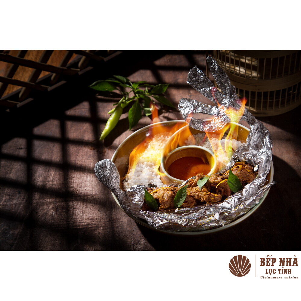 Beef is grilled until the exterior is lightly charred while the inside remains tender and juicy. The dish is presented with sea salt sprinkled on the plate.