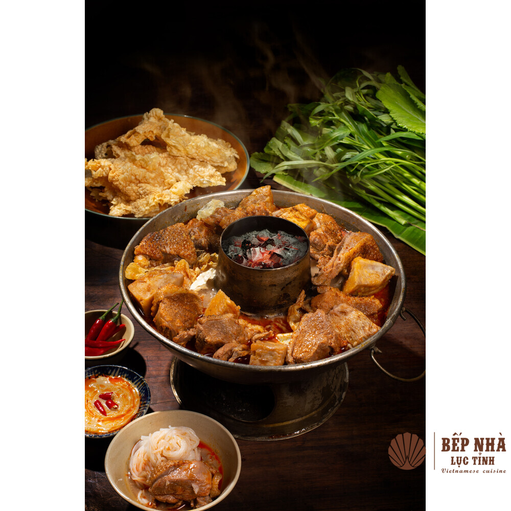 Lau Vit Nau Chao is a famous hot pot from Southern Vietnam. The broth is made with fermented bean curd (chao), giving it a rich and creamy flavor. Tender duck meat, taro, and greens complete this comforting dish, perfect for family gatherings.