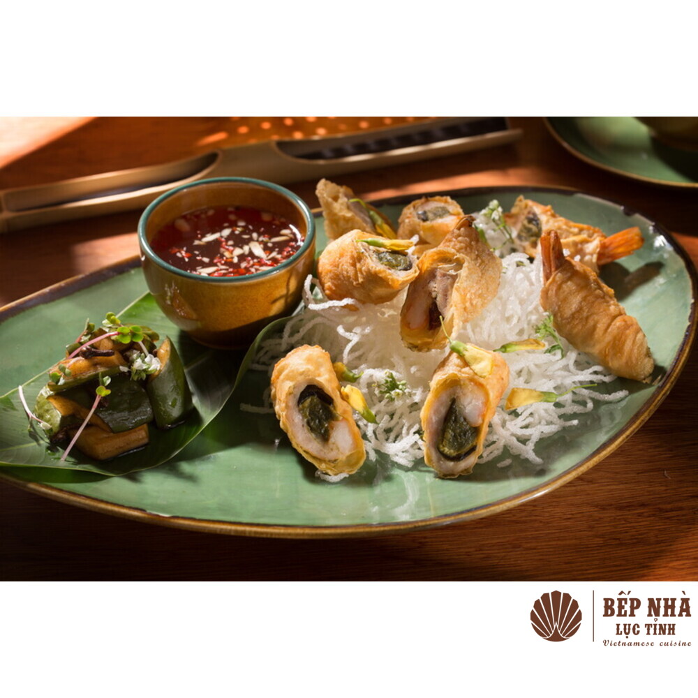 Món chả giò đặc biệt kết hợp giữa tôm tươi và trứng bắc thảo cắt lát, cuốn trong lớp bánh tráng mỏng rồi chiên vàng giòn. Trứng bắc thảo làm tăng chiều sâu hương vị, tạo nên trải nghiệm ẩm thực độc đáo, hấp dẫn ngay từ miếng đầu tiên. Thưởng thức cùng rau sống và nước mắm pha chua ngọt để trọn vị.