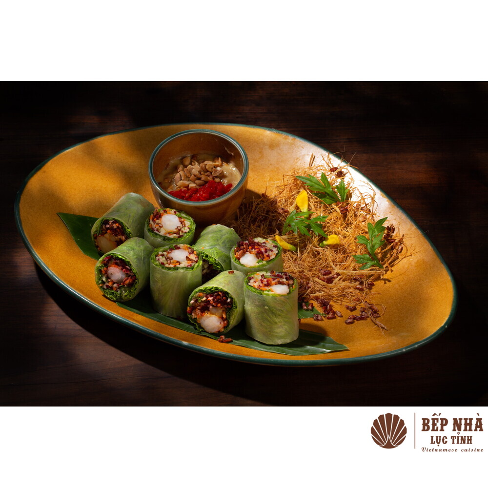Gỏi cuốn tôm nướng mang hương vị đậm đà từ tôm được nướng chín tới, cuốn trong bánh tráng với rau sống và bún tươi. Khi chấm kèm sốt bơ đậu phộng mịn béo, món ăn trở nên hài hòa, thơm ngon và đầy sáng tạo – rất được yêu thích bởi thực khách tìm kiếm sự mới mẻ trong ẩm thực truyền thống.
